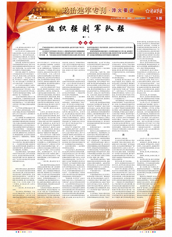 “組織有力量,打贏有保證?!痹鰪婞h組織的政治功能與組織功能,是激活組織力量的關(guān)鍵抓手。正是這種超強的組織能力,讓人民軍隊在任何艱難險阻面前都能萬眾一心、奮勇向前,成為戰(zhàn)勝一切敵人的力量源泉。
