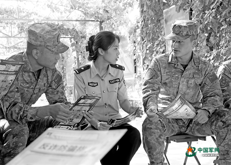 9月6日,陸軍某訓(xùn)練基地邀請(qǐng)駐地民警走進(jìn)軍營(yíng)開展普法宣傳活動(dòng),講解反詐防騙知識(shí)。羅興倉(cāng)攝