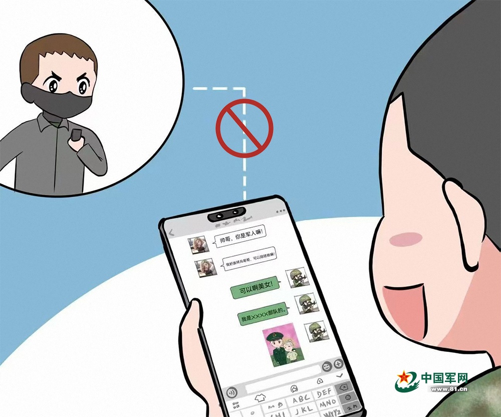 網(wǎng)絡交友陷阱多,嚴防勾連和竊密。敵特勢力無孔不入,網(wǎng)上交友要保持頭腦清醒,不要隨便跟“陌生人”說話,以防被別有用心之人利用。