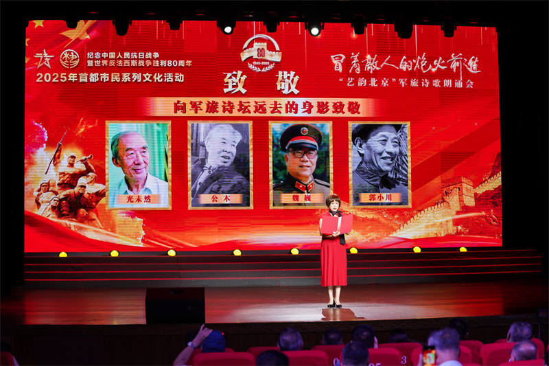 在紀念中國人民抗日戰(zhàn)爭暨世界反法西斯戰(zhàn)爭勝利八十周年的莊嚴日子里,一場以《冒著敵人的炮火前進》為題的軍旅詩歌朗誦會,于8月20日上午在北京市豐臺區(qū)文化館劇場隆重舉行,她宛如一柄青銅軍號吹響,穿越歲月,攜著歷史回響與現(xiàn)實強音,在無數(shù)人的心靈深處激起滔滔浪花。這不僅是一場精心編排的藝術(shù)盛宴,更是一次穿透歷史硝煙、凝聚民族魂魄的集體精神洗禮。它以其厚重的歷史底蘊、鮮明的時代關(guān)注、精湛的藝術(shù)呈現(xiàn)和深沉的情感力量,成為首都市民紀念抗日戰(zhàn)爭勝利暨世界反法西斯戰(zhàn)爭勝利80周年系列文化活動中的一個亮點。