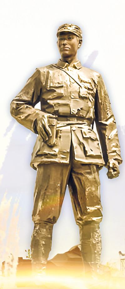 圖為遼陽(yáng)白乙化故居中的英雄雕塑。