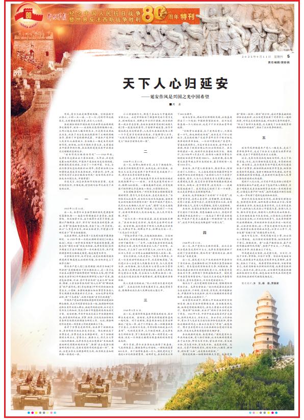 在波瀾壯闊的中國(guó)抗戰(zhàn)乃至世界反法西斯戰(zhàn)爭(zhēng)大棋局中,延安——這座陜北高原的偏隅小城,之所以能成為世人矚目的焦點(diǎn),不是因?yàn)檫@里地沃水美,而在于為全民族抗戰(zhàn)提供了正確的戰(zhàn)略指導(dǎo)、提供了豐富的精神武器。中國(guó)共產(chǎn)黨率領(lǐng)人民軍隊(duì)從南昌城頭、長(zhǎng)征路上一路走來(lái)形成的好作風(fēng)、好傳統(tǒng),如同不竭的力量之源,支撐著這座中國(guó)革命的燈塔,在抗戰(zhàn)的漫漫長(zhǎng)夜中放射出無(wú)比耀眼的真理光芒。
