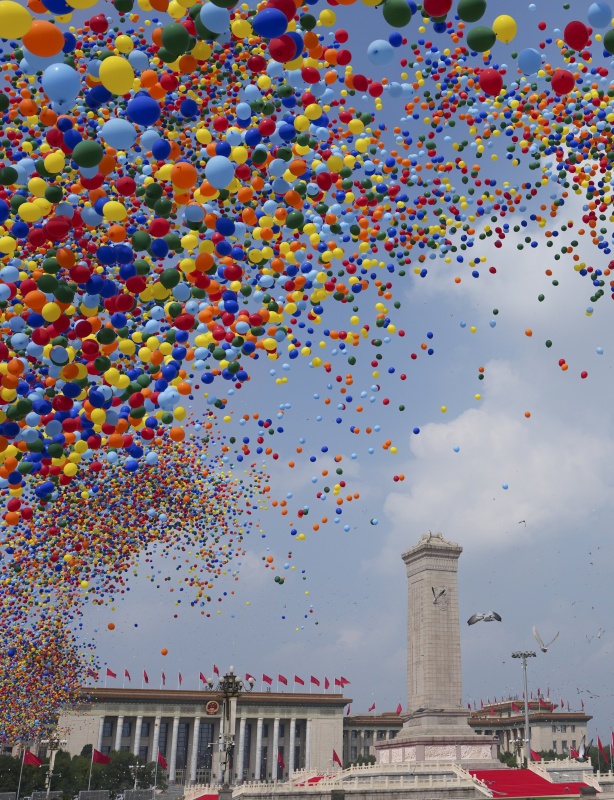 2025年9月3日,紀(jì)念中國人民抗日戰(zhàn)爭暨世界反法西斯戰(zhàn)爭勝利80周年大會在北京隆重舉行。這是紀(jì)念大會現(xiàn)場放飛氣球和鴿子。新華社 發(fā)