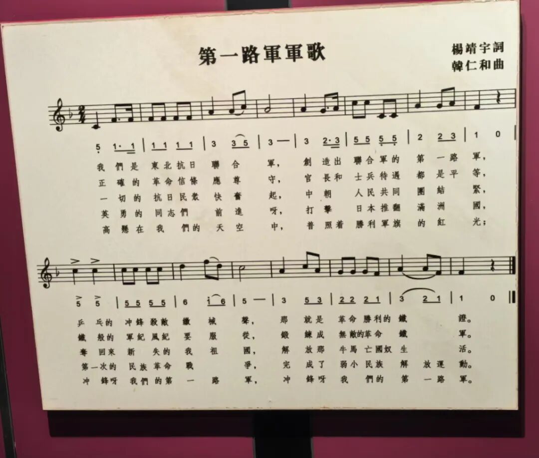 楊靖宇創(chuàng)作的《東北抗日聯(lián)軍第一路軍軍歌》,唱出了抗聯(lián)將士們永不屈服堅持戰(zhàn)斗的理由:“奪回來所失的我祖國,解放那牛馬亡國奴生活”。來源:楊靖宇烈士陵園暨東北抗日聯(lián)軍紀(jì)念館