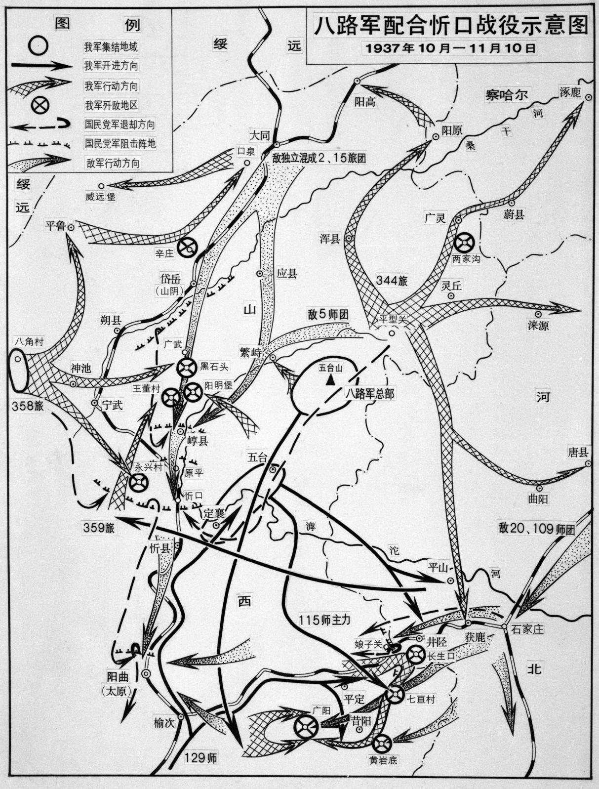 八路軍配合忻口戰(zhàn)役示意圖。