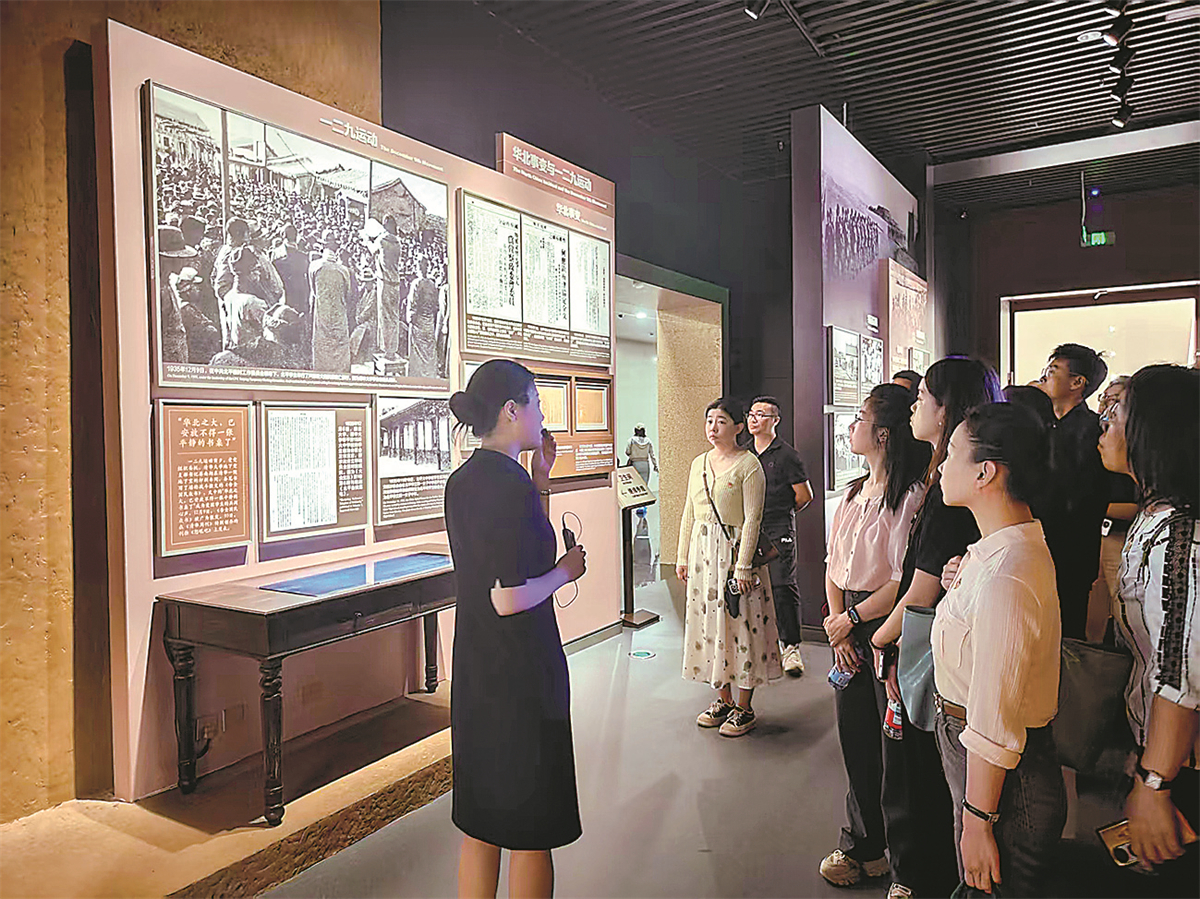 講解員為游客講述黨領(lǐng)導(dǎo)抗日戰(zhàn)爭的歷史。