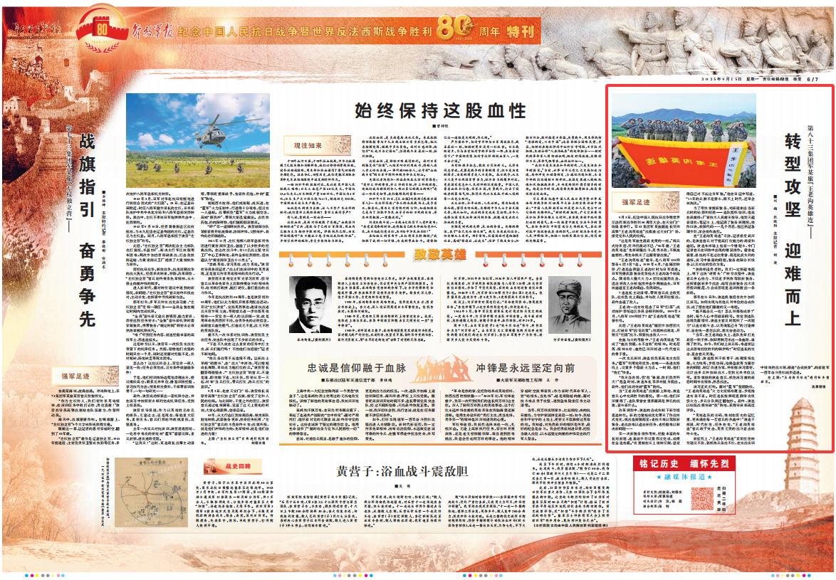 “英雄連隊的密碼,鐫刻在歷史的記憶里,更奔涌在每一茬官兵的熱血中!”該連干部說,時代在變,任務在變,“王老溝英雄連”官兵敢于突擊、英勇無畏的戰(zhàn)斗意志始終未變。