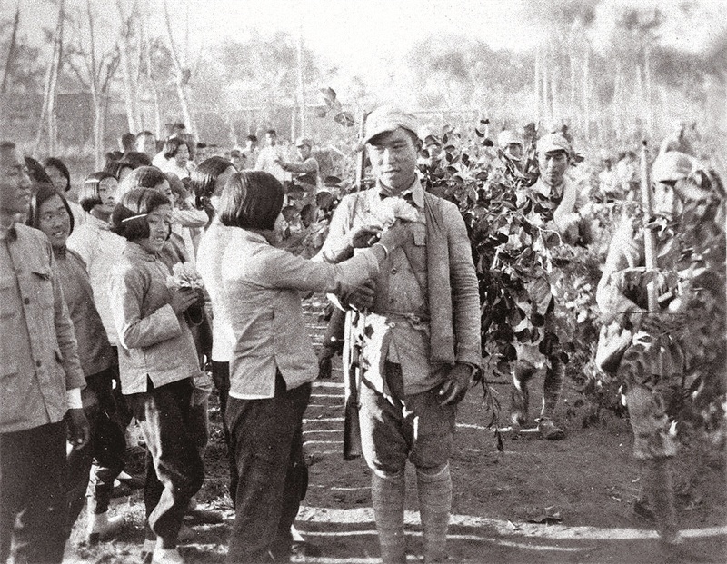 抗日根據(jù)地群眾熱烈歡迎參加百團(tuán)大戰(zhàn)的將士們凱旋。