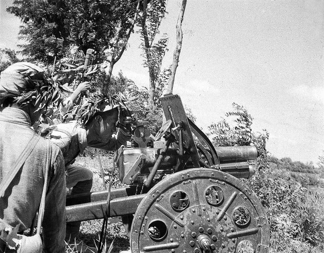 1945年9月11日,濱海、魯中部隊解放臨沂。圖為我軍炮兵準(zhǔn)備向敵射擊。