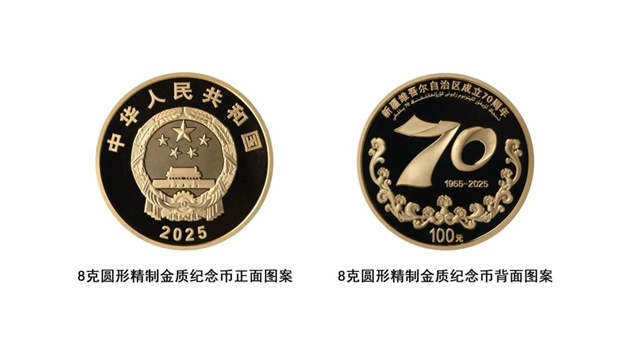 9月19日,中國人民銀行發(fā)行新疆維吾爾自治區(qū)成立70周年金銀紀(jì)念幣一套。該套金銀紀(jì)念幣共2枚,其中金質(zhì)紀(jì)念幣1枚,銀質(zhì)紀(jì)念幣1枚,均為中華人民共和國法定貨幣。