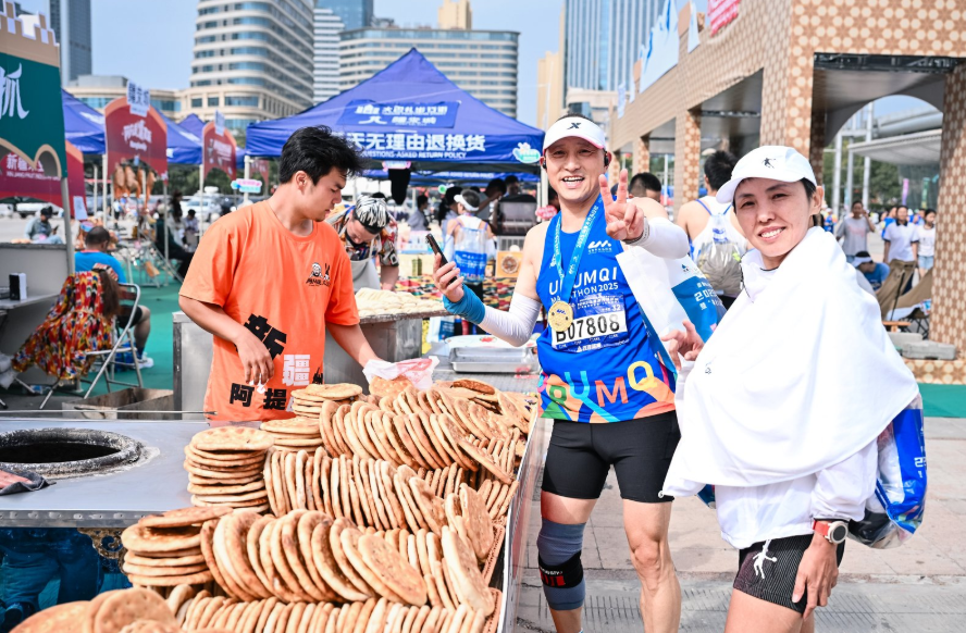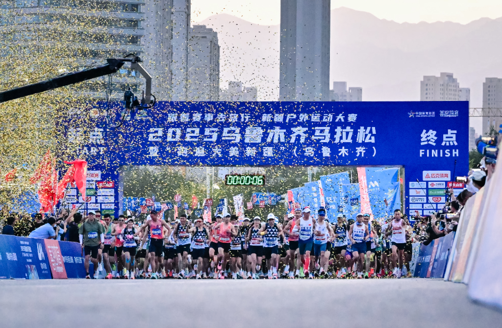 參賽選手途經(jīng)烏魯木齊紅山。新華社記者 王菲 攝