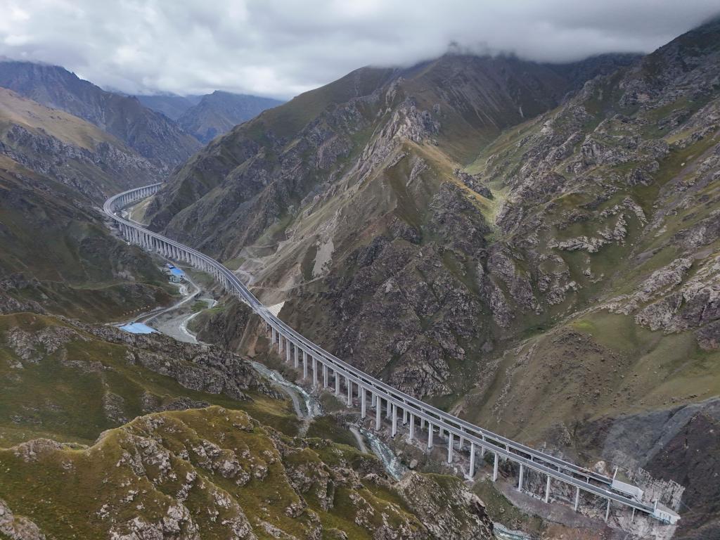 新疆烏尉高速公路穿越天山山脈(8月19日攝,無人機(jī)照片)。新華社記者 胡虎虎 攝