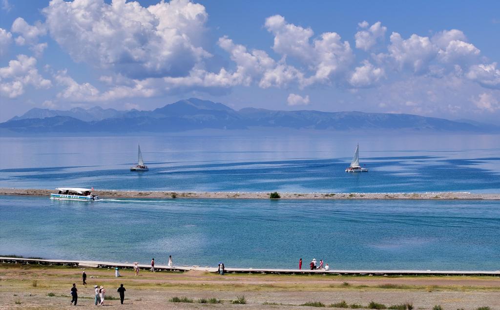 7月17日,游客在新疆博爾塔拉蒙古自治州賽里木湖景區(qū)游玩賞景。新華社發(fā)(張利民 攝)