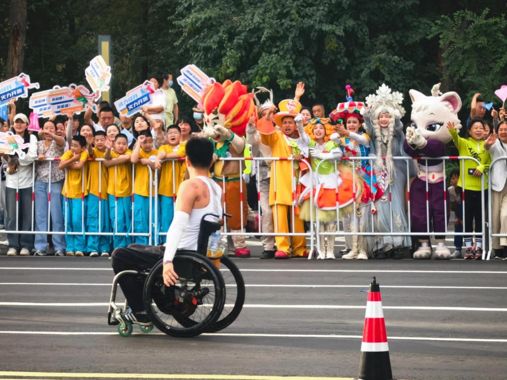 在跑者隊(duì)伍中有10余名輪椅跑者