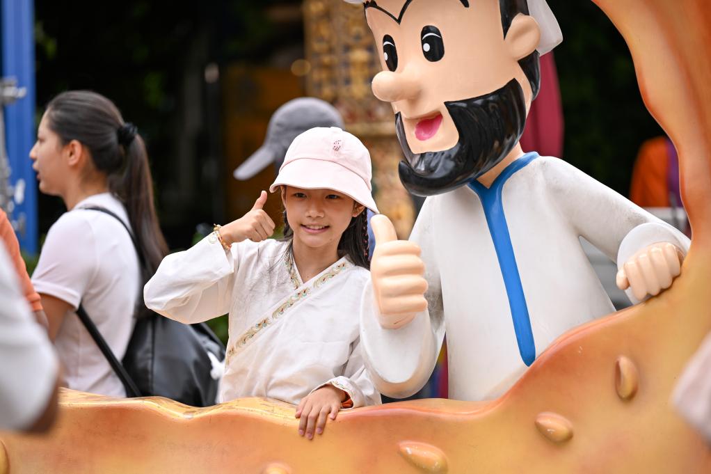 8月21日,小游客在烏魯木齊大巴扎步行街拍照留影。自7月以來,大巴扎步行街日均接待游客約20萬人次。新華社記者 王菲 攝