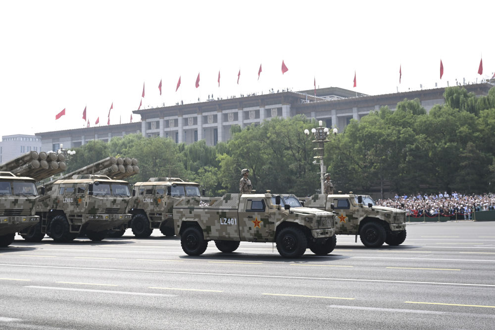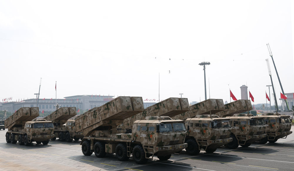 這是遠(yuǎn)程火炮方隊(duì)接受檢閱