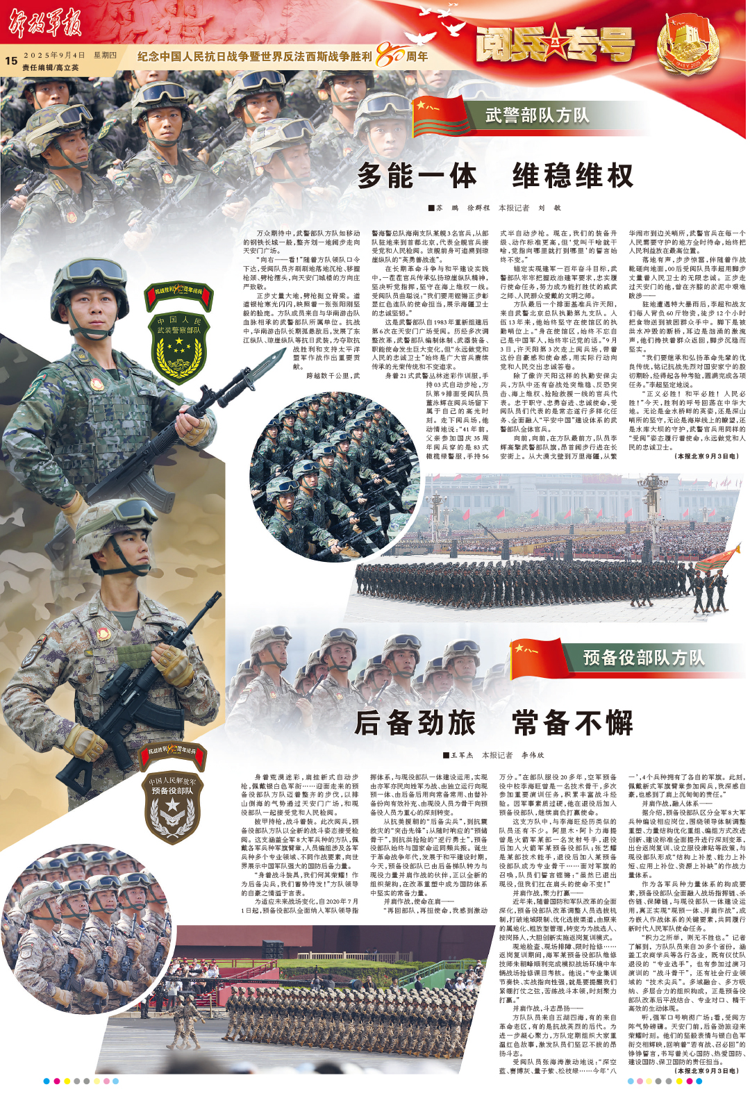 “正義必勝!和平必勝!人民必勝!”今天,勝利的呼號回蕩在中華大地。無論是金水橋畔的英姿,還是深山哨所的堅守,無論是海岸線上的瞭望,還是水庫大壩的守護,武警官兵用同樣的“受閱”姿態(tài)履行著使命,永遠做黨和人民的忠誠衛(wèi)士。