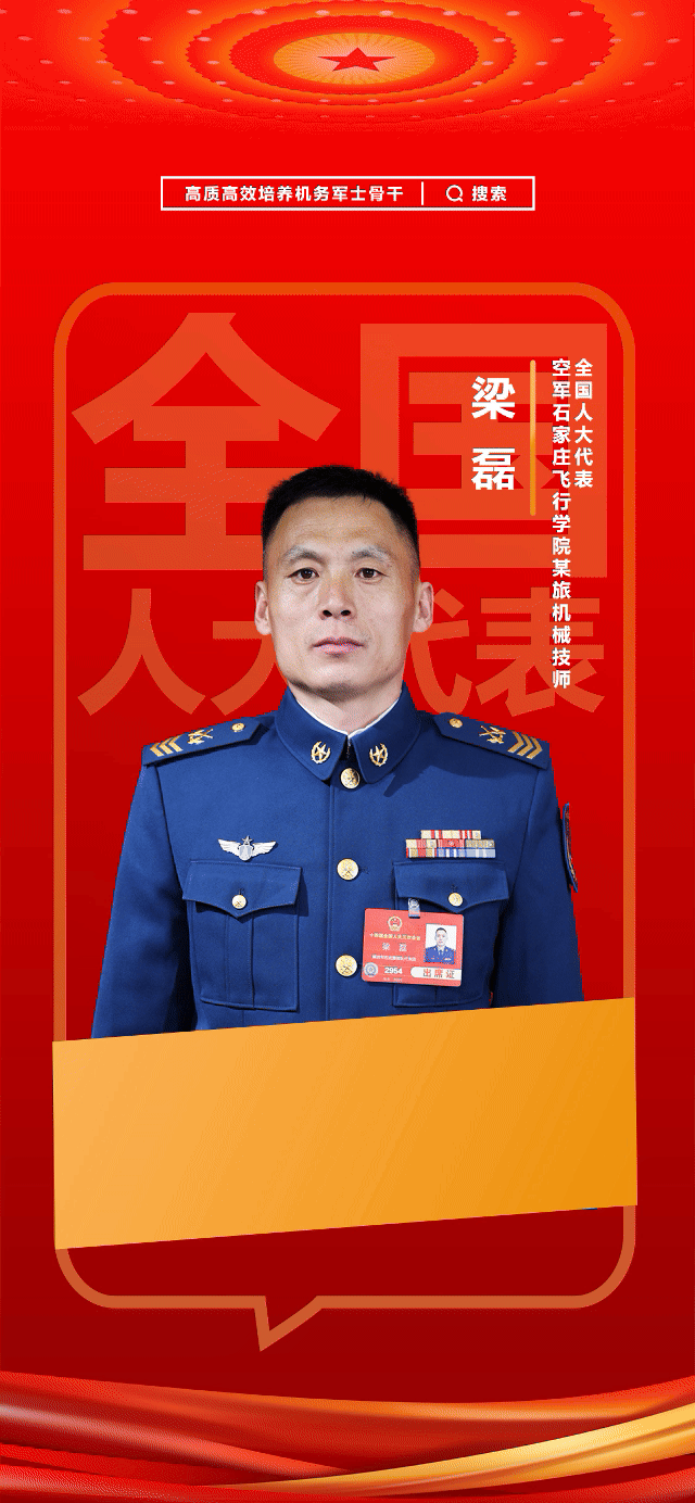 梁磊已經(jīng)在機(jī)務(wù)戰(zhàn)線奮斗了23年,從過(guò)去負(fù)責(zé)單架飛機(jī)的機(jī)械技師,到負(fù)責(zé)多架飛機(jī)的代理排長(zhǎng),從“小梁”到“頂梁柱”,他不僅在業(yè)務(wù)層面嚴(yán)格要求自身,更是主動(dòng)請(qǐng)纓,帶教更多的機(jī)務(wù)軍士,“人才培養(yǎng)不是流水線??傊?,要想留住兵心,先得走近兵心,咱得摸準(zhǔn)‘脈搏’、一起跳動(dòng)!”這次參會(huì),梁磊帶著關(guān)于技術(shù)兵種人才激勵(lì)機(jī)制的建議、帶著濃濃的兵情兵意走進(jìn)人民大會(huì)堂,積極發(fā)揮代表作用,為持續(xù)推動(dòng)航空機(jī)務(wù)軍士骨干隊(duì)伍能力提升貢獻(xiàn)力量。