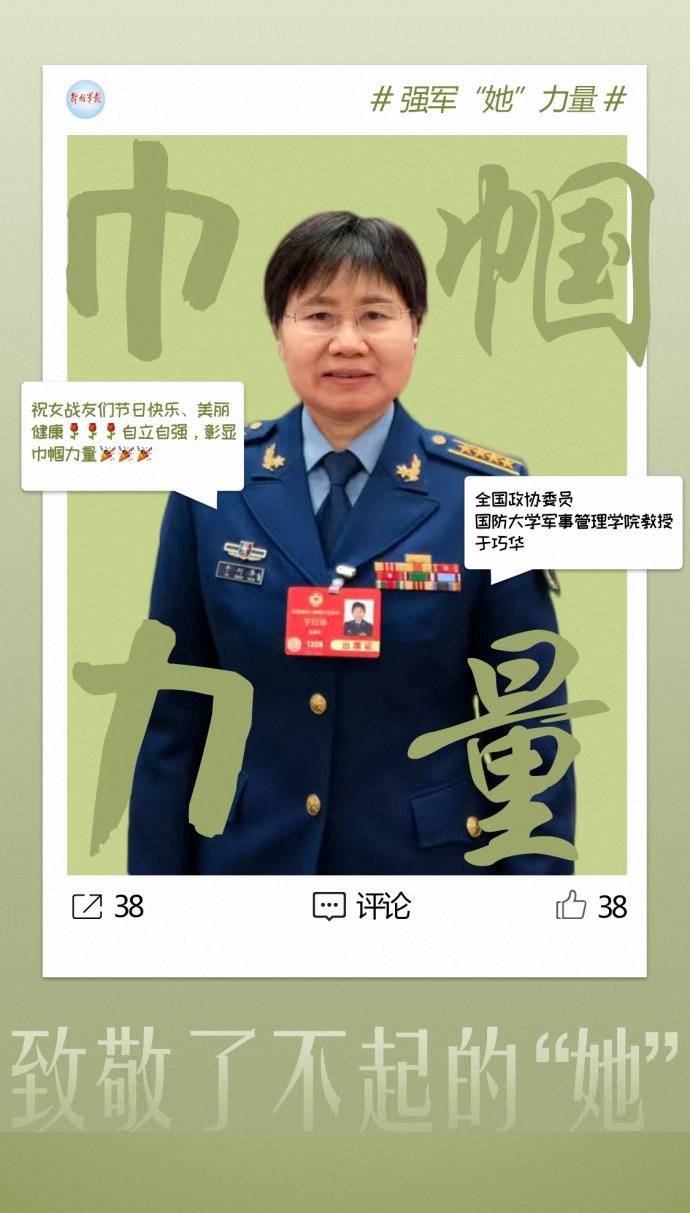 “祝女戰(zhàn)友們節(jié)日快樂、美麗健康,自尊自立自強,彰顯巾幗力量!”