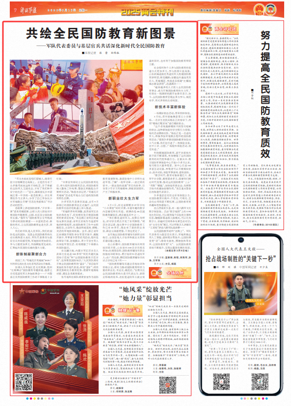 我們的軍隊(duì)是人民軍隊(duì),我們的國防是全民國防。談及全民國防教育的生動實(shí)踐和喜人變化,軍隊(duì)代表委員與基層官兵共同感受到,軍地協(xié)同更加密切、參與力量更加多元、科技賦能更見成效,匯聚起共筑國防長城的強(qiáng)大力量。