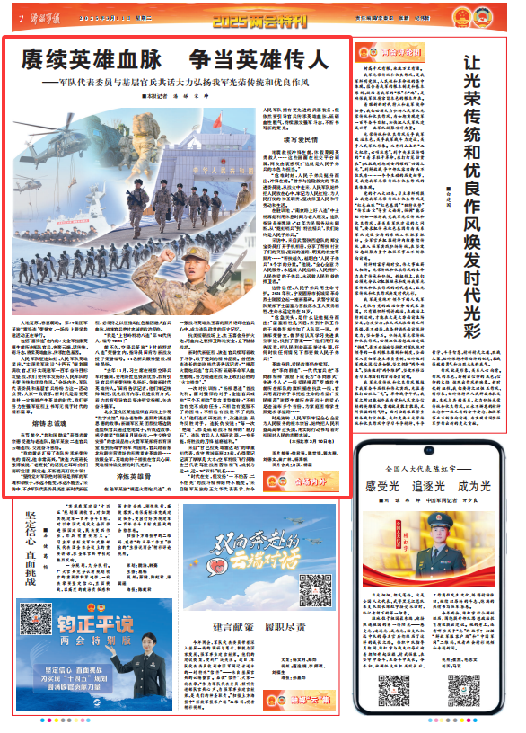 “時代在變,但發(fā)揚(yáng)‘一不怕苦、二不怕死’的戰(zhàn)斗精神始終不能變。”來自陸軍某旅的王文華代表表示,如今人民軍隊(duì)擁有更先進(jìn)的武器裝備,但依然要引導(dǎo)官兵傳承英雄血脈,砥礪血性膽氣,持續(xù)激發(fā)強(qiáng)軍斗志,不斷書寫新的榮光。