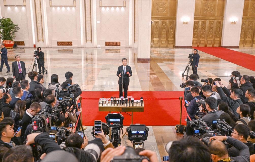 3月5日,第十四屆全國人民代表大會(huì)第三次會(huì)議首場(chǎng)“部長通道”集中采訪活動(dòng)在北京人民大會(huì)堂舉行。這是記者在現(xiàn)場(chǎng)提問。