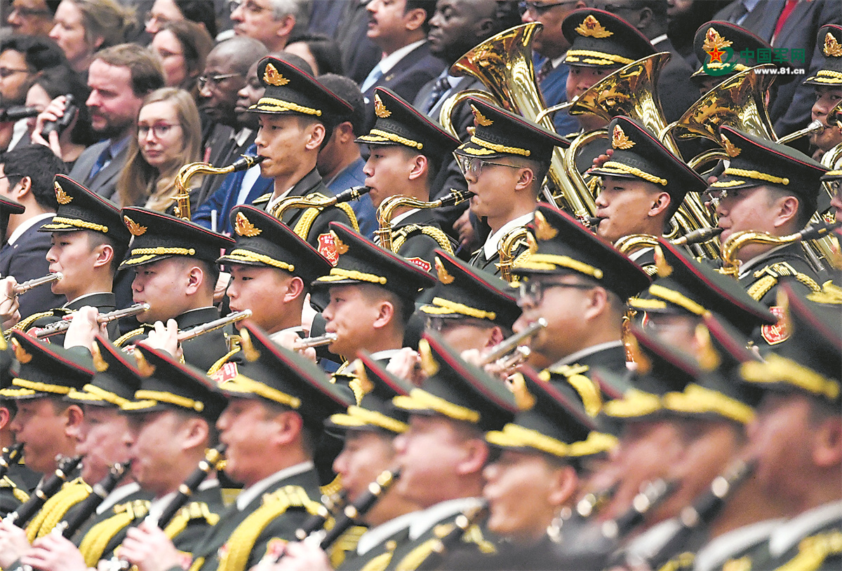 3月4日,全國政協(xié)十四屆三次會議在北京人民大會堂開幕。圖為軍樂團現(xiàn)場演奏國歌。解放軍報記者 高采薇 攝