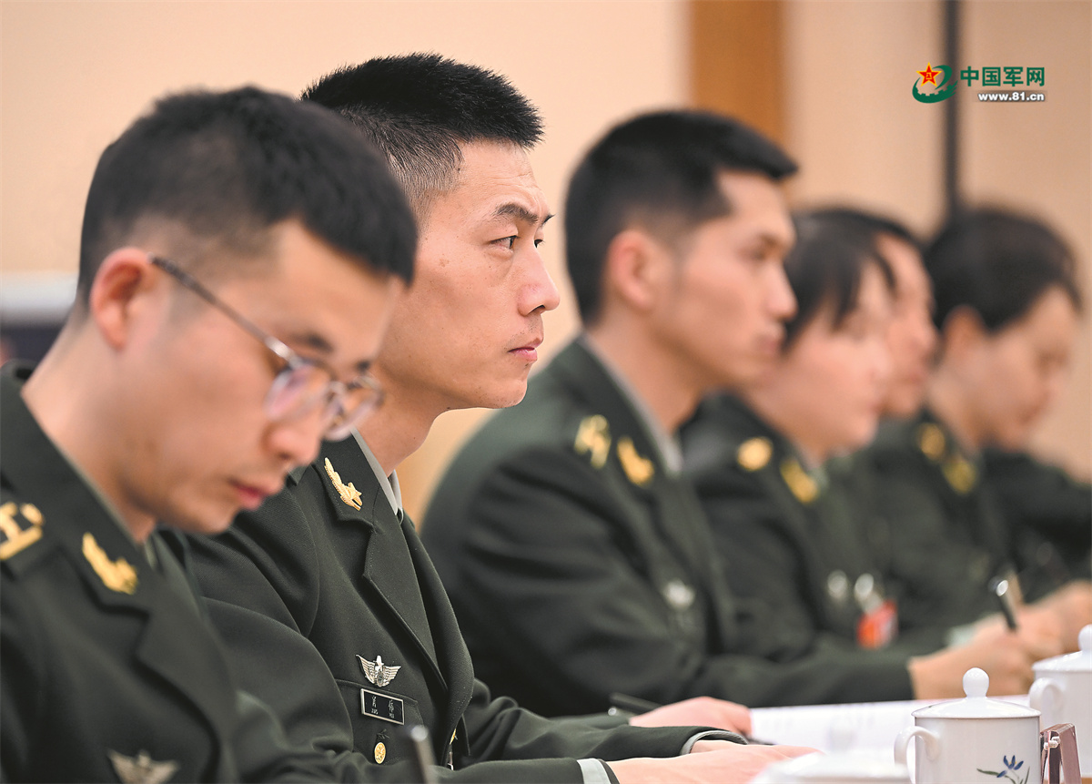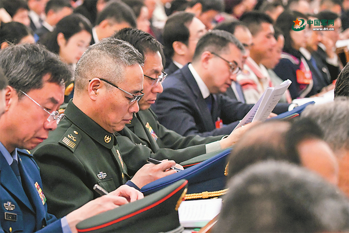 3月5日下午,解放軍和武警部隊代表團分組審議政府工作報告。圖為軍隊人大代表認真聽取發(fā)言。解放軍報記者 穆瑞林 攝
