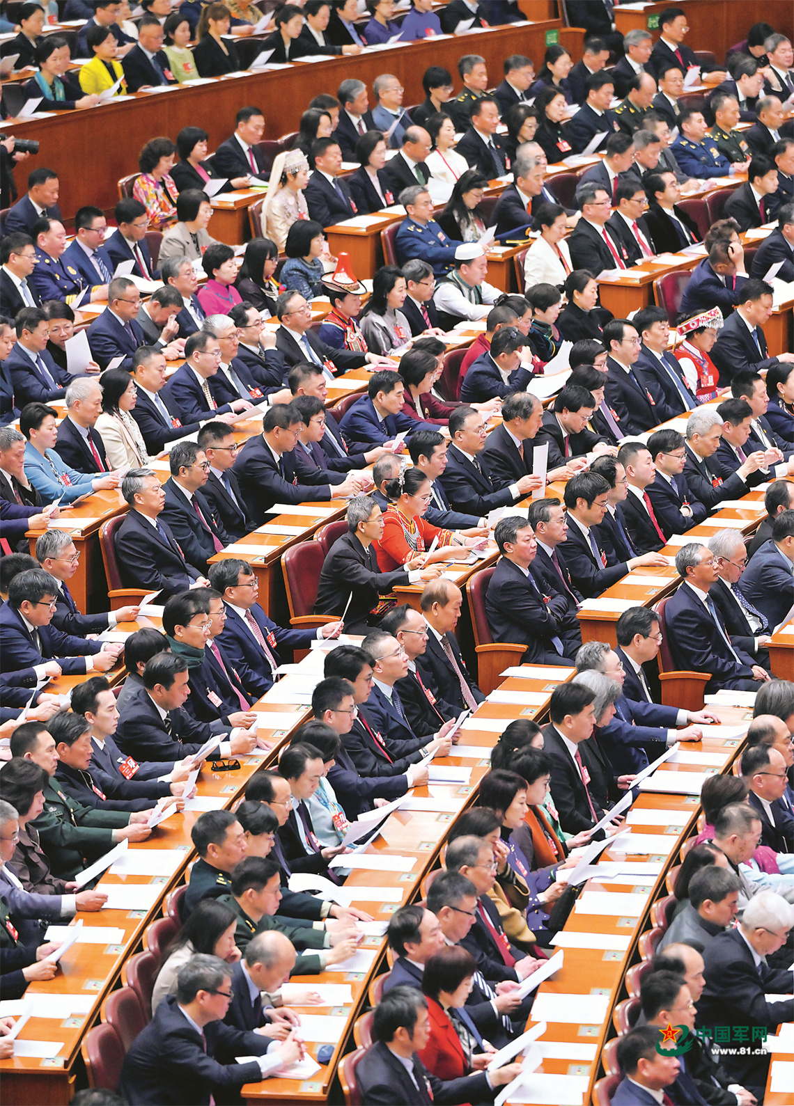 3月7日下午,解放軍和武警部隊代表團舉行全體會議。解放軍報記者 穆瑞林 攝