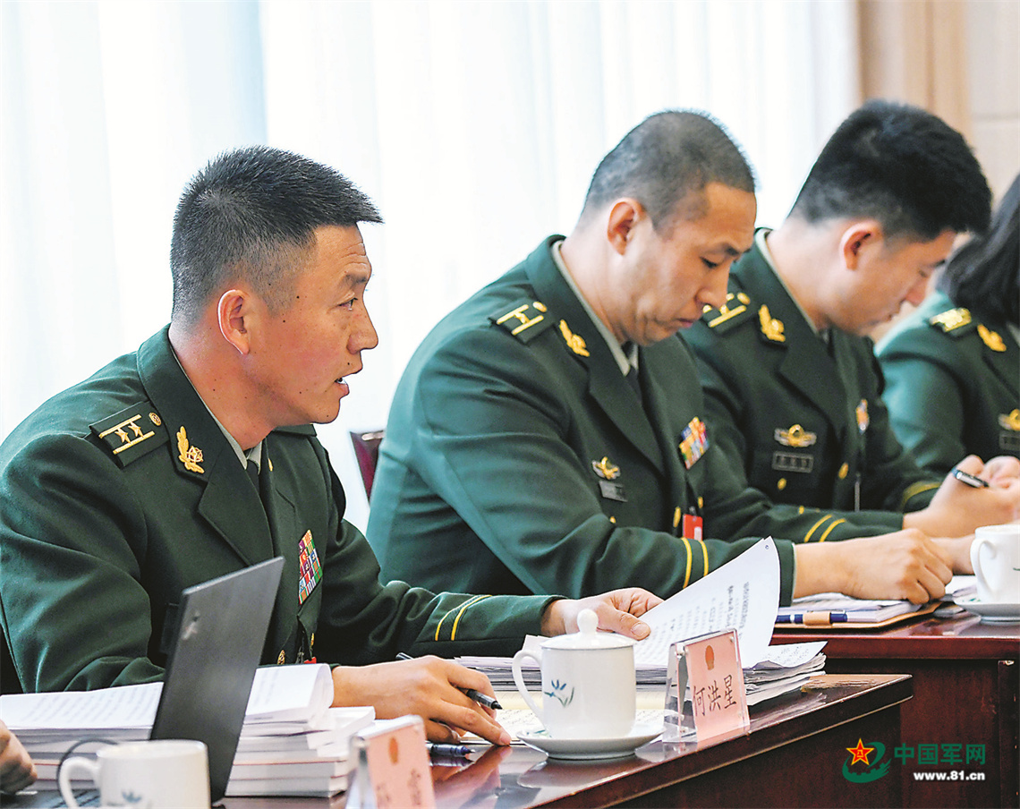3月7日上午,解放軍和武警部隊代表團舉行小組會議。圖為軍隊人大代表發(fā)言。解放軍報記者 王俊 攝