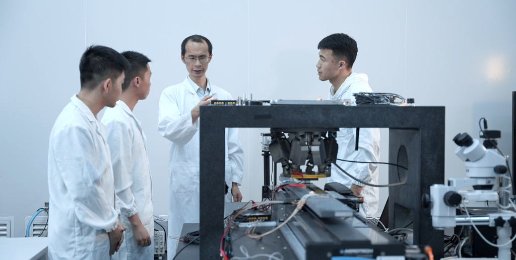 圖為劉小康(右二)在實(shí)驗(yàn)室指導(dǎo)學(xué)生做實(shí)驗(yàn)。(重慶理工大學(xué)供圖)