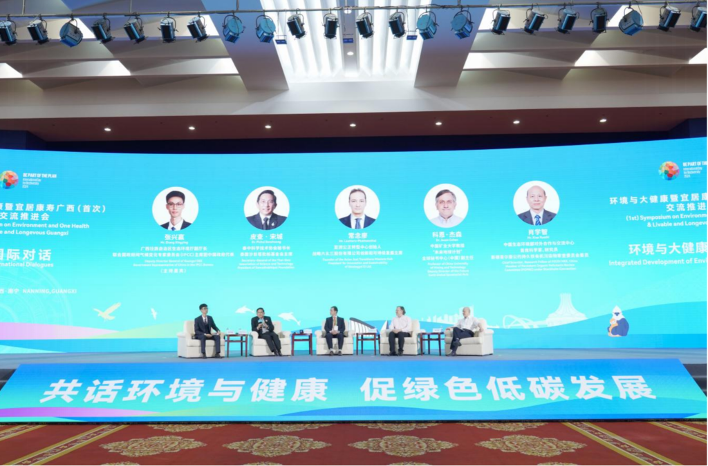 2024年5月18日,張興贏(左一)在環(huán)境與大健康暨宜居康壽廣西交流推進(jìn)會上主持國際對話會。新華社發(fā)