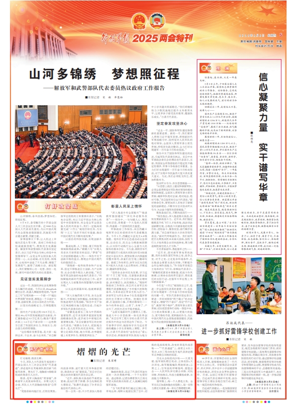 “近年,部隊(duì)練兵備戰(zhàn)的節(jié)奏更加緊湊,戰(zhàn)友們勇于拼搏、爭當(dāng)先鋒的勁頭都很足?!睆垶t代表道出了許多來自基層的代表的心聲。