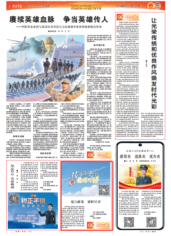 今年兩會,軍隊代表委員帶著深入基層一線的調研與思考,積極為國家發(fā)展、強軍事業(yè)建言獻策。他們的建議提案,受到廣泛關注。近日,軍隊代表委員收到中國軍網記者送來的一封特殊“信件”——來自基層官兵的云端留言。品讀“信件”,大家一致表示,“作為軍隊代表委員,傾聽傳遞部隊官兵心聲、為強軍事業(yè)建言獻策,是我們的神圣職責?!?/p>
