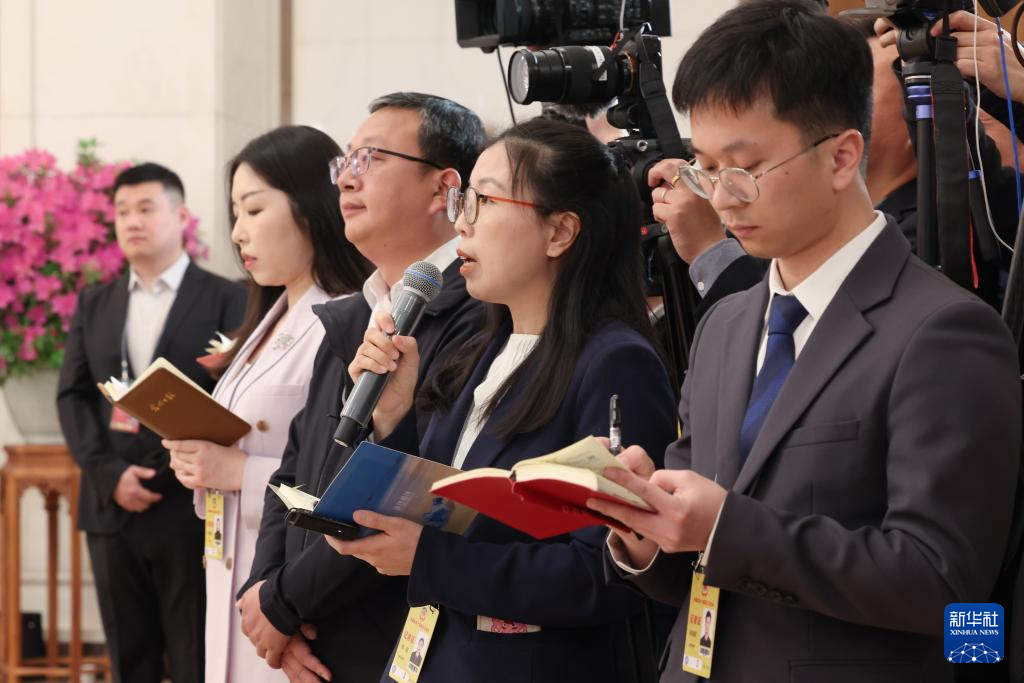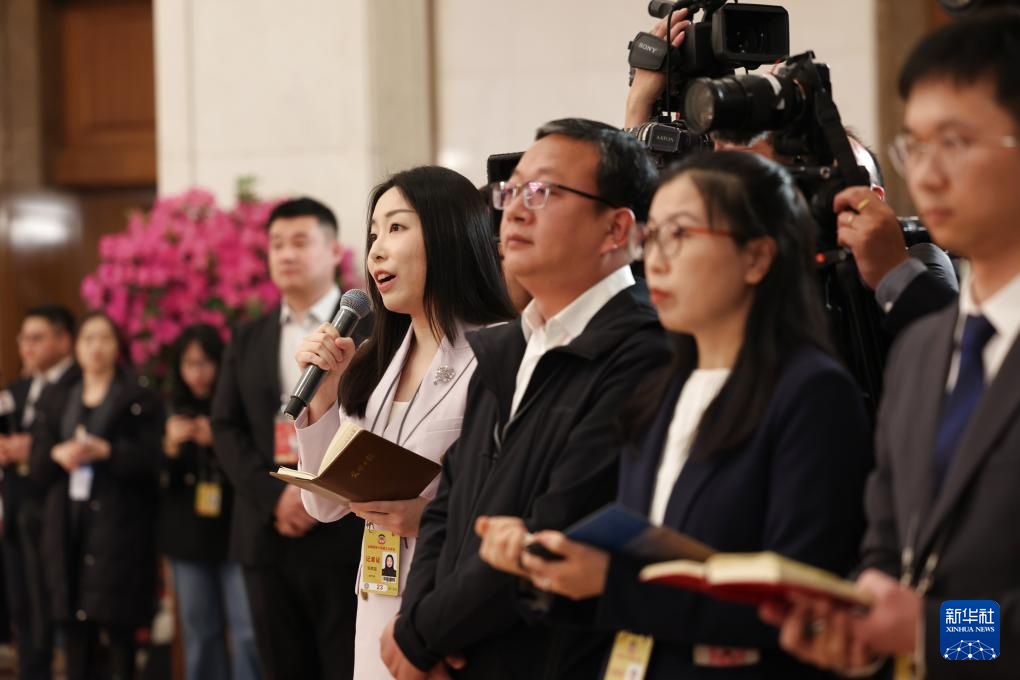 3月4日,全國(guó)政協(xié)十四屆三次會(huì)議首場(chǎng)“委員通道”集體采訪活動(dòng)在北京人民大會(huì)堂舉行。這是新華社記者在提問(wèn)。