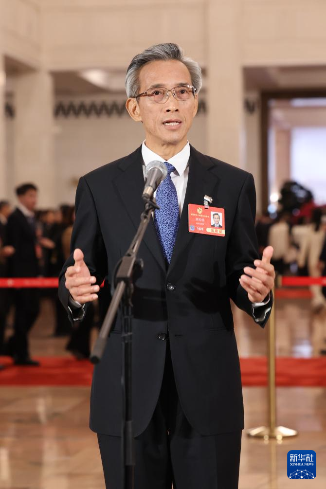 3月4日,全國(guó)政協(xié)十四屆三次會(huì)議首場(chǎng)“委員通道”集體采訪活動(dòng)在北京人民大會(huì)堂舉行。這是全國(guó)政協(xié)委員林松添接受媒體采訪。