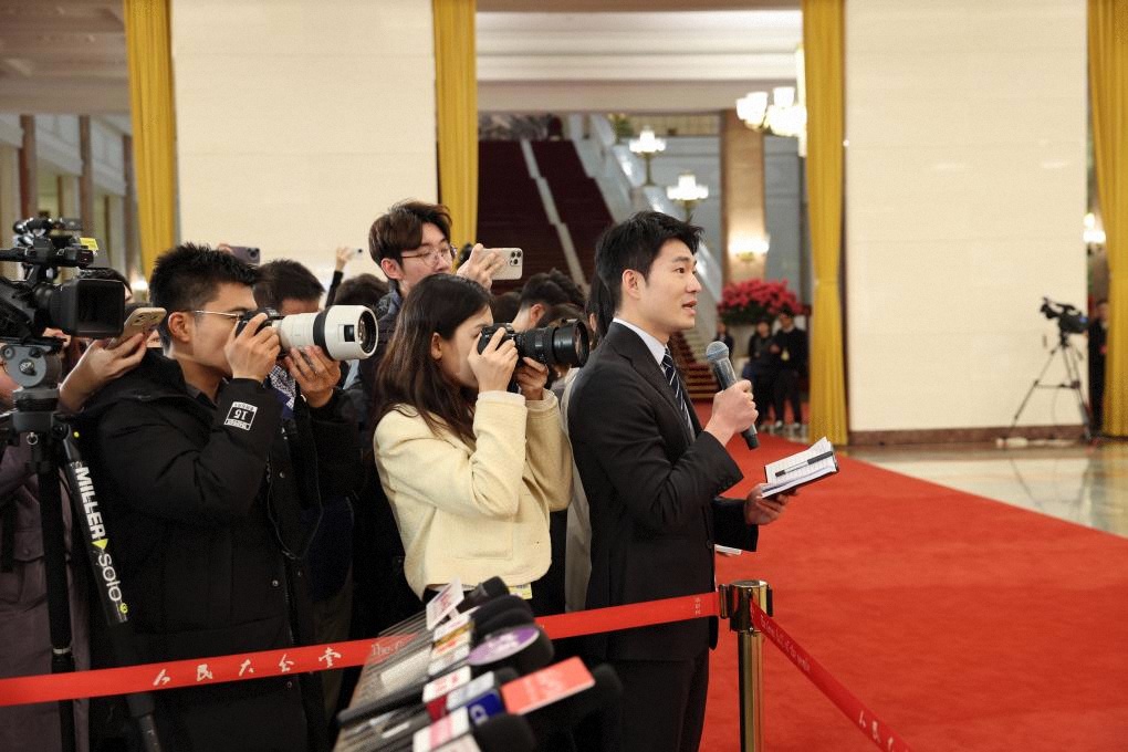 3月5日,第十四屆全國人民代表大會第三次會議首場“部長通道”集中采訪活動在北京人民大會堂舉行。這是記者在現(xiàn)場提問。