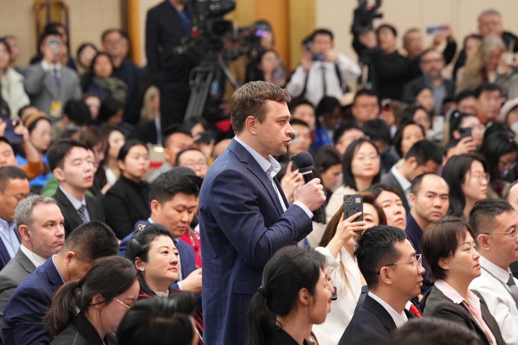 3月7日,十四屆全國(guó)人大三次會(huì)議在北京梅地亞中心新聞發(fā)布廳舉行記者會(huì)。中共中央政治局委員、外交部長(zhǎng)王毅就“中國(guó)外交政策和對(duì)外關(guān)系”相關(guān)問題回答中外記者提問。這是記者在提問。