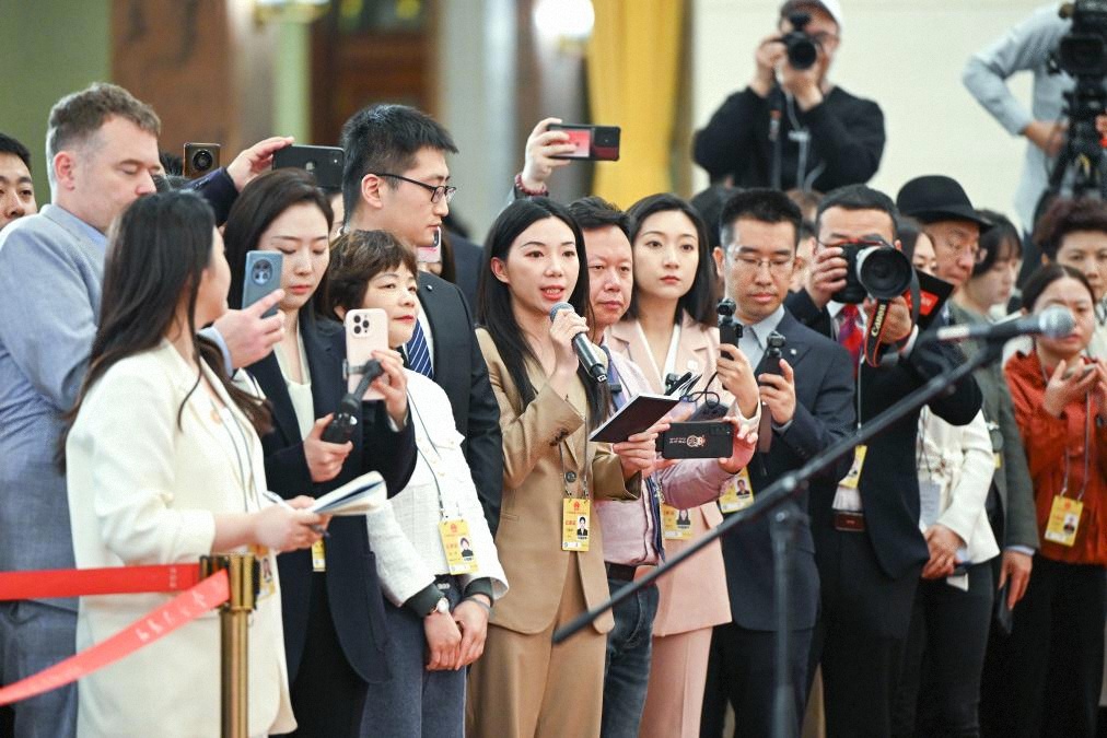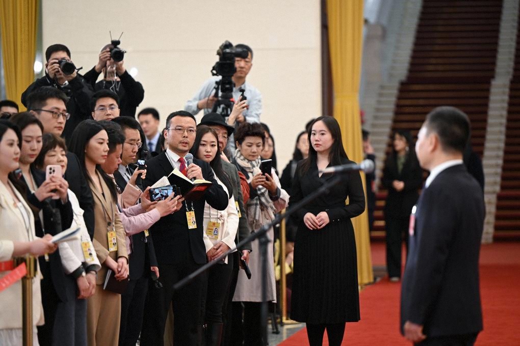 3月8日,第十四屆全國(guó)人民代表大會(huì)第三次會(huì)議第二場(chǎng)“部長(zhǎng)通道”集中采訪(fǎng)活動(dòng)在北京人民大會(huì)堂舉行。這是記者在現(xiàn)場(chǎng)提問(wèn)。