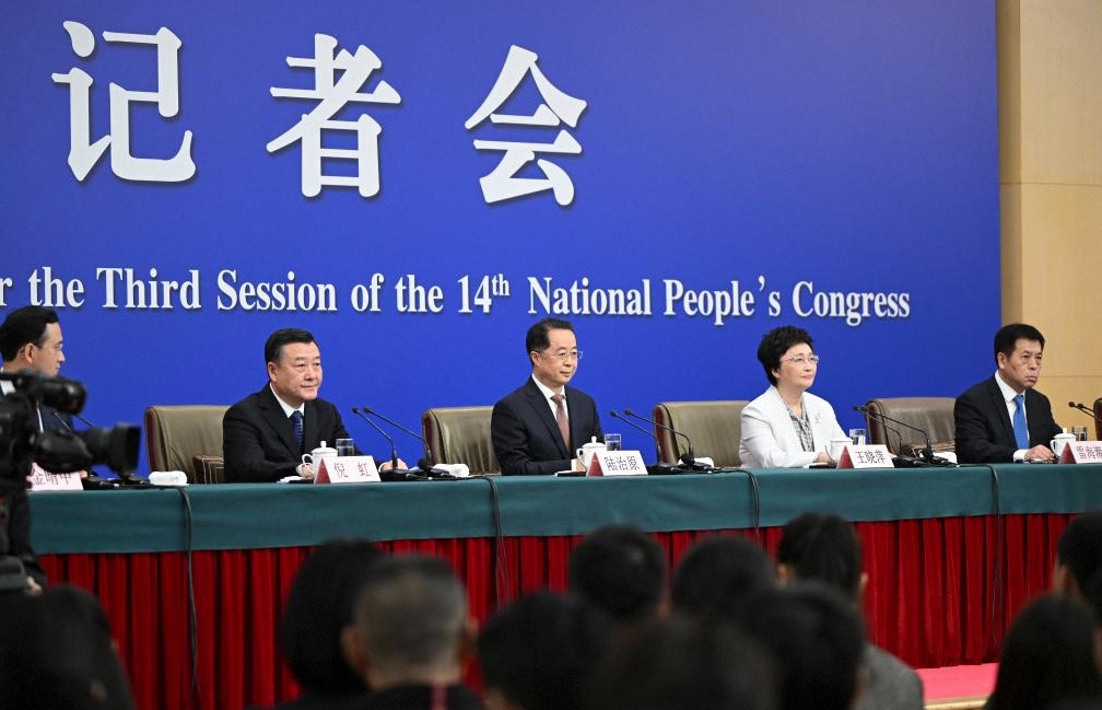 3月9日,十四屆全國人大三次會議在北京梅地亞中心新聞發(fā)布廳舉行記者會。民政部部長陸治原、人力資源和社會保障部部長王曉萍、住房和城鄉(xiāng)建設(shè)部部長倪虹、國家衛(wèi)生健康委員會主任雷海潮就民政、就業(yè)和社會保障、住房、衛(wèi)生健康等相關(guān)問題回答中外記者提問。
