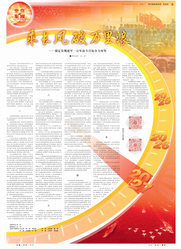 英雄的人民軍隊(duì)在機(jī)械化戰(zhàn)爭的淬火中壯大成長,在信息化戰(zhàn)爭的世紀(jì)烽煙中換羽重生,在智能化戰(zhàn)爭的激蕩博弈中邁向一流。緊盯科技之變、戰(zhàn)爭之變、對手之變,更需要我們把準(zhǔn)自己的“變”與“不變”,真正找到以“三化融合”實(shí)現(xiàn)高質(zhì)高效發(fā)展的路徑。新征程上,只有深入實(shí)施改革強(qiáng)軍戰(zhàn)略,狠抓各項(xiàng)改革任務(wù)落實(shí),全面提高新時(shí)代備戰(zhàn)打仗能力,才能為如期實(shí)現(xiàn)建軍一百年奮斗目標(biāo)、基本實(shí)現(xiàn)國防和軍隊(duì)現(xiàn)代化提供有力保障。