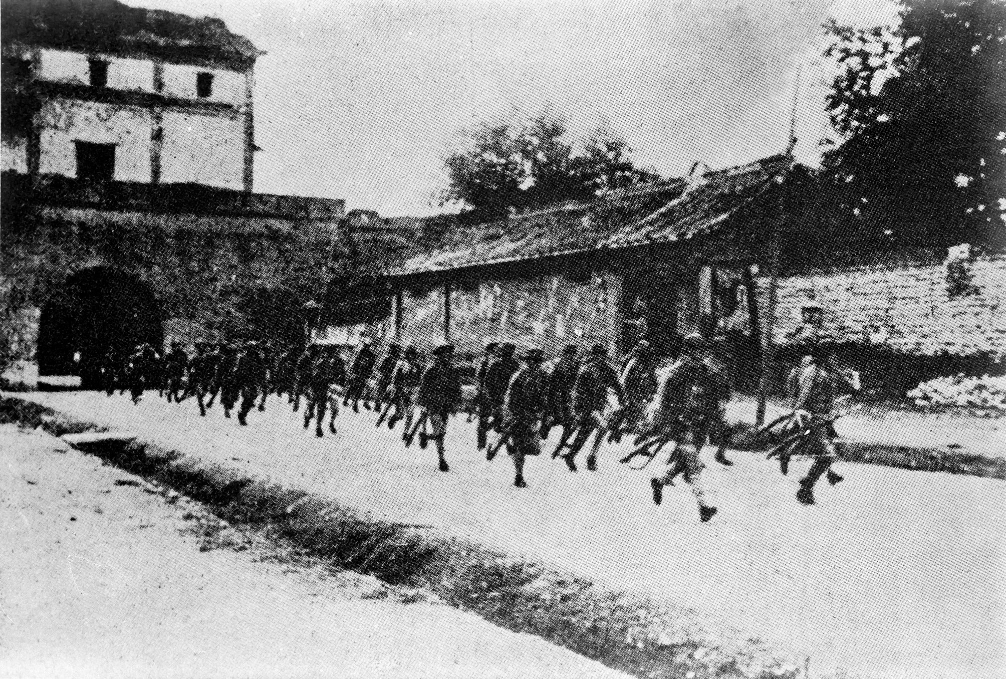 駐守宛平城的中國軍隊出城抗擊日本侵略軍。