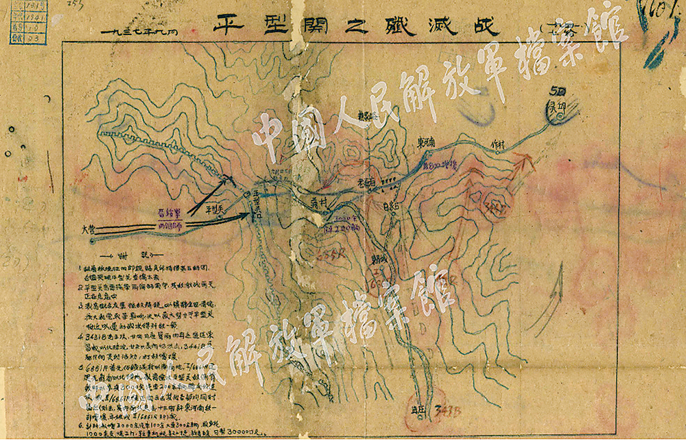 這份《平型關(guān)之殲滅戰(zhàn)》地圖,左下角的“附注”詳細(xì)記述了平型關(guān)之戰(zhàn)的背景、兵力部署、經(jīng)過和戰(zhàn)果,是研究平型關(guān)大捷的重要檔案。