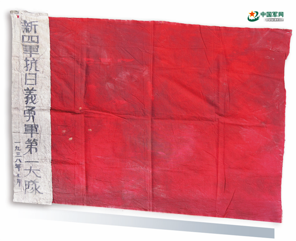這面落款為1938年7月的旗幟,紅色旗面已經(jīng)褪色,左側(cè)“新四軍抗日義勇軍第一大隊(duì)”的字跡卻清晰可辨。