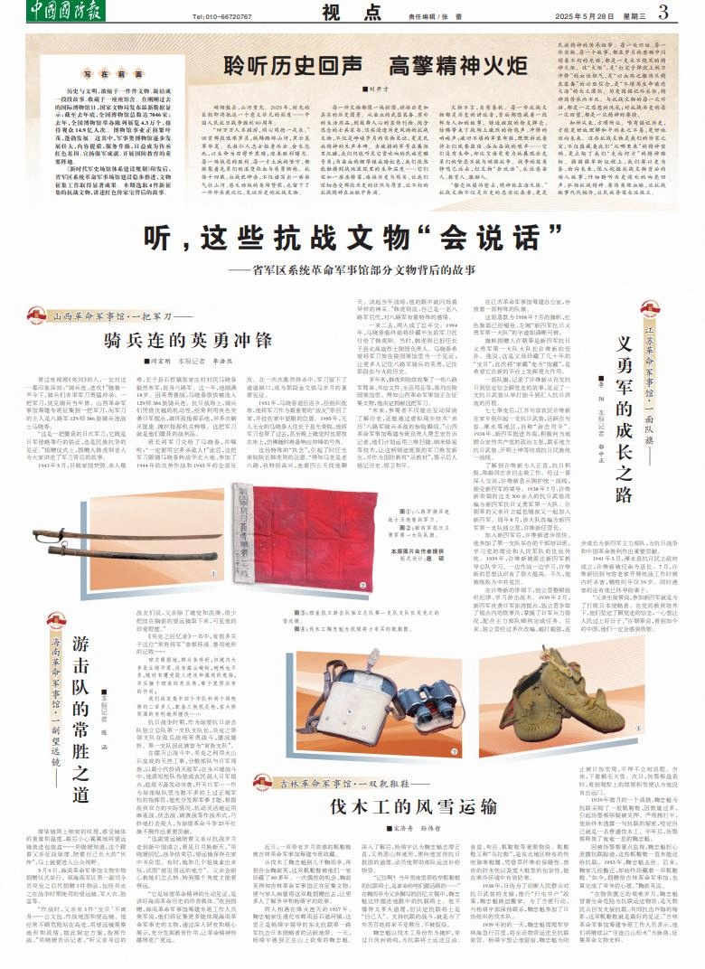 知所從來(lái),方明所往。唯有銘記歷史,才能更好地理解和平的來(lái)之不易,更好地邁向未來(lái)。這些抗戰(zhàn)文物是我們的傳家之寶,不僅蘊(yùn)藏著我們“從哪里來(lái)”的精神密碼,更立起了我們“走向何方”的精神路標(biāo)。強(qiáng)國(guó)強(qiáng)軍新征程上,我們要以史為鑒、面向未來(lái),深入挖掘抗戰(zhàn)文物背后的動(dòng)人故事,仔細(xì)聆聽(tīng)歷史深處的響亮回聲,弘揚(yáng)抗戰(zhàn)精神、賡續(xù)英雄血脈,讓抗戰(zhàn)故事代代相傳,讓民族脊梁永遠(yuǎn)挺立。