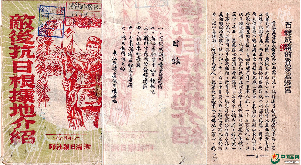 渤海區(qū)是抗戰(zhàn)時期山東五大戰(zhàn)略區(qū)之一。這份1944年由中共渤海區(qū)黨委機關(guān)報渤海日報社編印的《敵后抗日根據(jù)地介紹》,詳細(xì)記載了八路軍、新四軍和華南人民抗日游擊隊,積極貫徹黨的六屆六中全會決議精神,在敵后戰(zhàn)場開辟新局面的艱辛歷程。