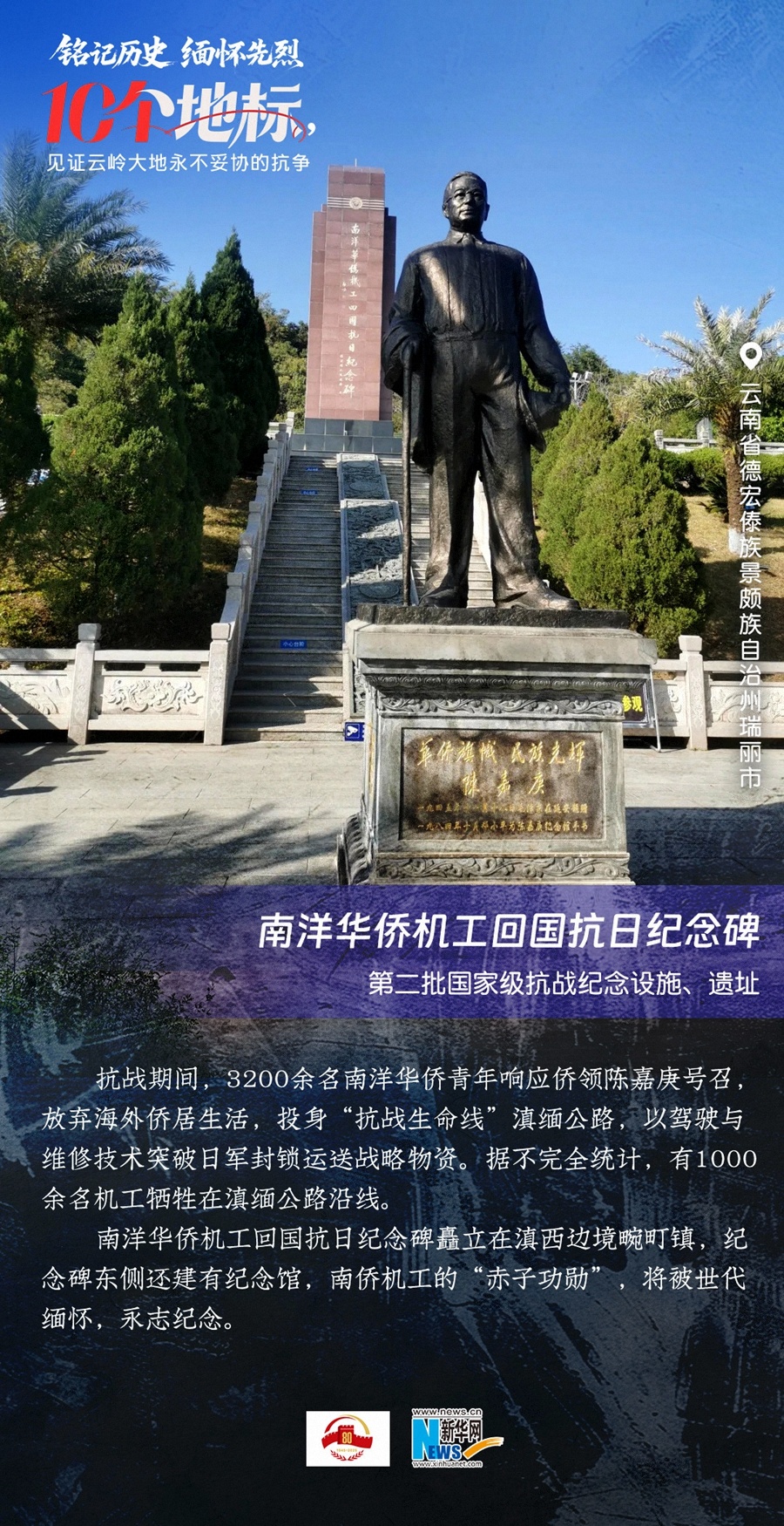 80年過去,曾經(jīng)的戰(zhàn)場硝煙雖散,但英氣永存。在國務(wù)院公布的前三批國家級抗戰(zhàn)紀念設(shè)施、遺址名錄中,云南省共有10個,分別為騰沖國殤墓園、騰沖滇西抗戰(zhàn)紀念館,龍陵抗日戰(zhàn)爭紀念館,國立西南聯(lián)合大學舊址,抗戰(zhàn)勝利紀念堂,松山戰(zhàn)役舊址,南洋華僑機工回國抗日紀念碑,怒江駝峰航線紀念館,施甸縣抗日江防遺跡群,滇緬公路惠通橋,滇西抗日戰(zhàn)爭紀念碑。它們承載著國人共同的歷史記憶與民族情感,也為我們學習和傳承抗戰(zhàn)精神提供了現(xiàn)實條件。