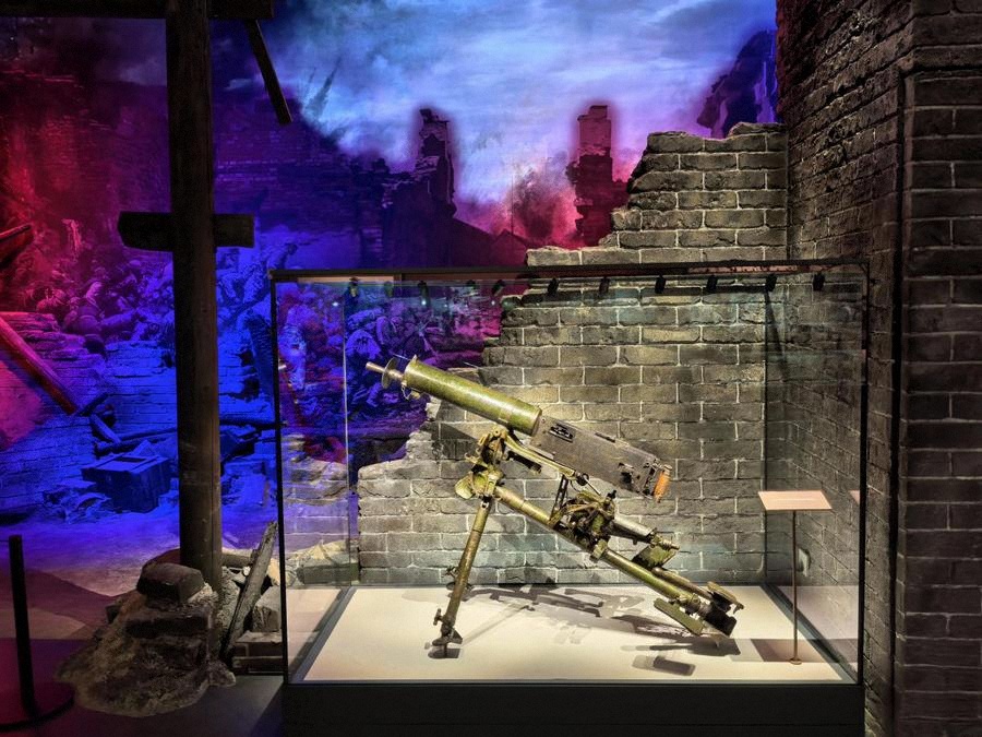 臺兒莊戰(zhàn)役中中國軍隊使用過的馬克沁重機槍。新華社記者 孫尉軒 攝