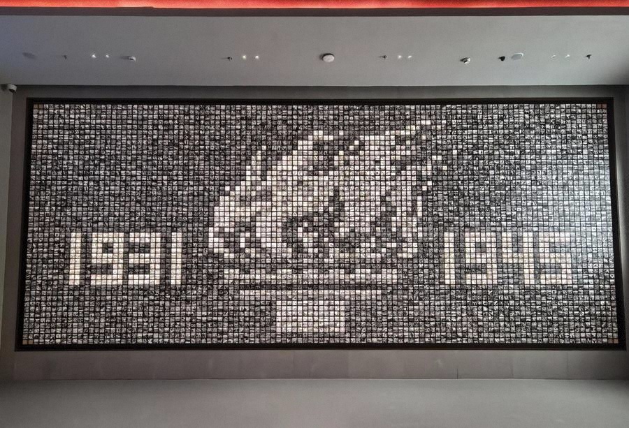 5098張照片組成的巨型照片墻,展現(xiàn)中國人民從1931年9月18日到1945年9月2日5098天浴血抗戰(zhàn)的歷史。新華社記者 孫尉軒 攝