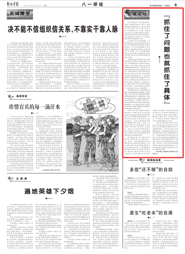 1942年4月12日,《解放日報》在社論《把“矢”拿穩(wěn) 把“的”認(rèn)清》中指出,整風(fēng)必須先把需要改進(jìn)的問題找出來,而且問題越細(xì)越具體越好,“不然整風(fēng)就是空話,或者徒費(fèi)氣力,搔不著癢處”。當(dāng)前,作風(fēng)建設(shè)中存在的問題都很具體,需要一一回應(yīng)。開展學(xué)習(xí)教育,就應(yīng)做到改進(jìn)作風(fēng)見“實例”、擠“水分”、拿“干貨”,以細(xì)求效。同時,也應(yīng)對各種問題細(xì)致入微、嚴(yán)查細(xì)究,由表及里,通過現(xiàn)象看本質(zhì),在解決個別具體問題的同時著力解決面上的普遍性問題。